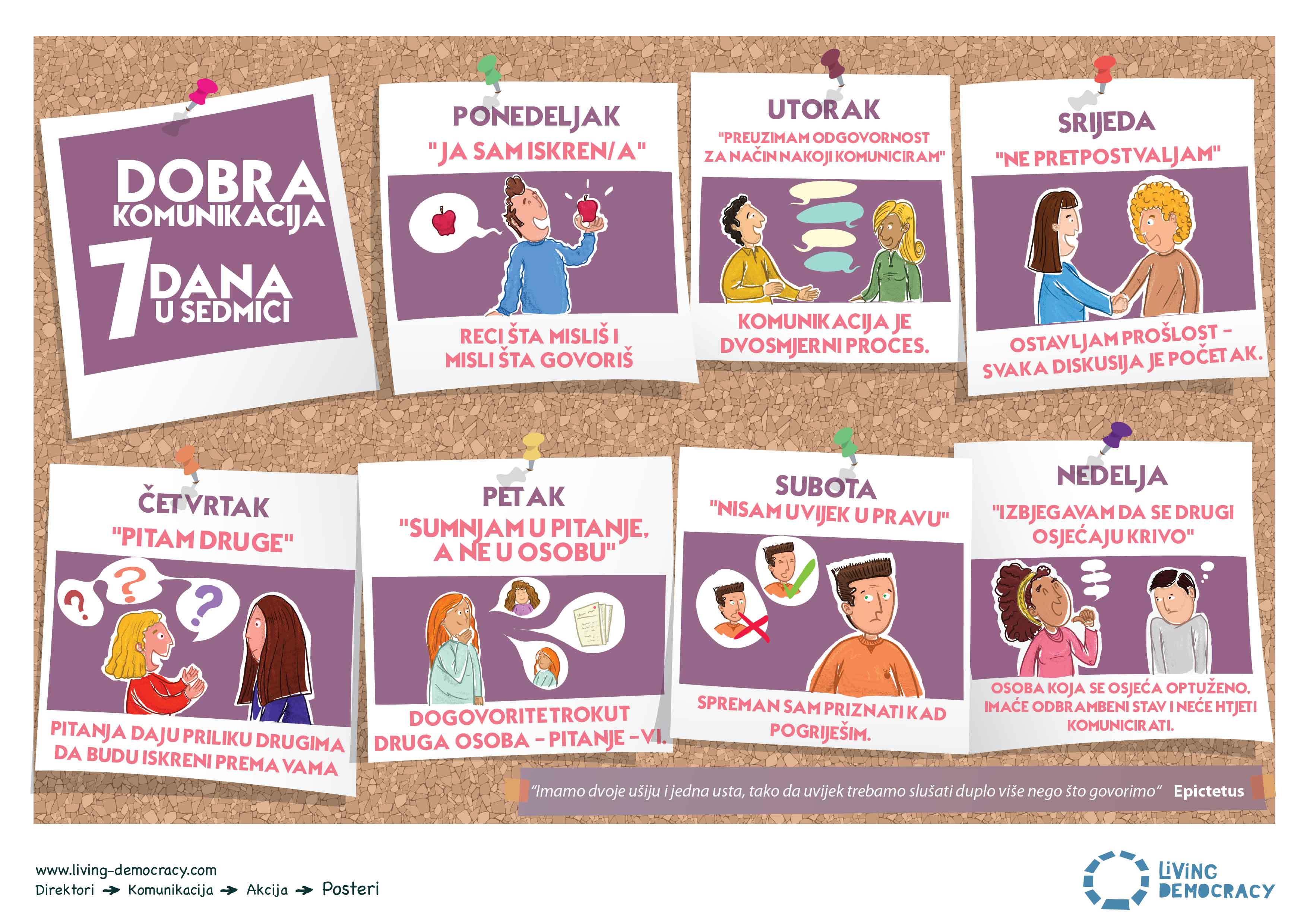 Living Democracy » Principals » KOMUNIKACIJA » Akcija » Posteri 1 – Dobra komunikacija – 7 dana u sedmici