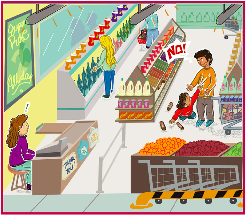 Sie sind mit Ihrer 2-jährigen Tochter Celina beim Einkaufen und sie entdeckt viele interessante Dinge wie Schokolade, Plastikschalen und Zeitschriften. Sie möchte, dass Sie diese Dinge in den Einkaufswagen legen und kaufen. Aber Sie brauchen diese Produkte nicht und sagen ihr, dass sie sie in Ruhe lassen soll. Celina möchte dann, dass Sie drei Schachteln ihrer Lieblingskekse kaufen. Sie sagen ihr: „Nein, Celina, wir haben schon solche Kekse zu Hause. Stell sie bitte wieder ins Regal!“ Aber Celina gehorcht nicht und besteht darauf, dass Sie ihr diese Kekse kaufen. Sie scheint einen Wutanfall zu bekommen, und es sieht nicht danach aus, als würde sie sich so schnell beruhigen.