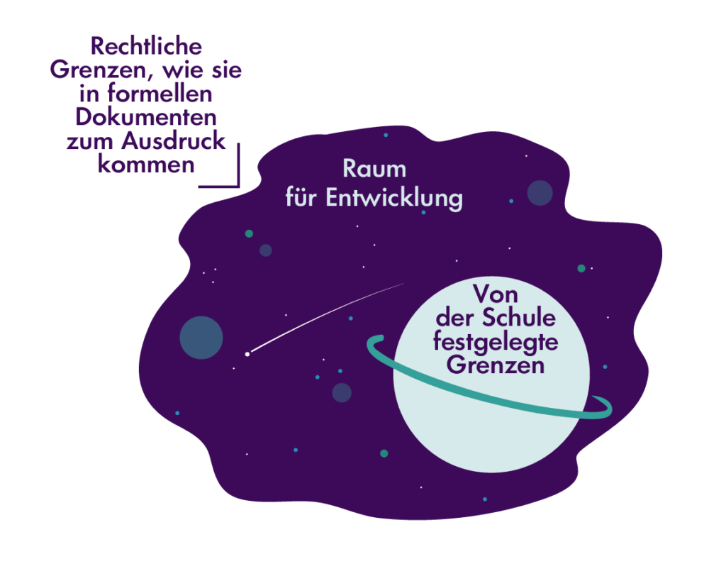 Die Kenntnis und das kritische Verständnis der Funktionsweise demokratischer Institutionen (CDC, S. 52) versetzt die Mitglieder der Schulgemeinschaft in die Lage, den institutionellen Rahmen und ihre Beteiligungsrechte an ihrer Schule zu verstehen (siehe Vorbereitungshandout 3.1). Insbesondere müssen sie die Grenzen und Möglichkeiten verstehen, die der institutionelle Rahmen ihrer Schule bietet (siehe Demokratische Steuerung von Schulen, S. 33 f).