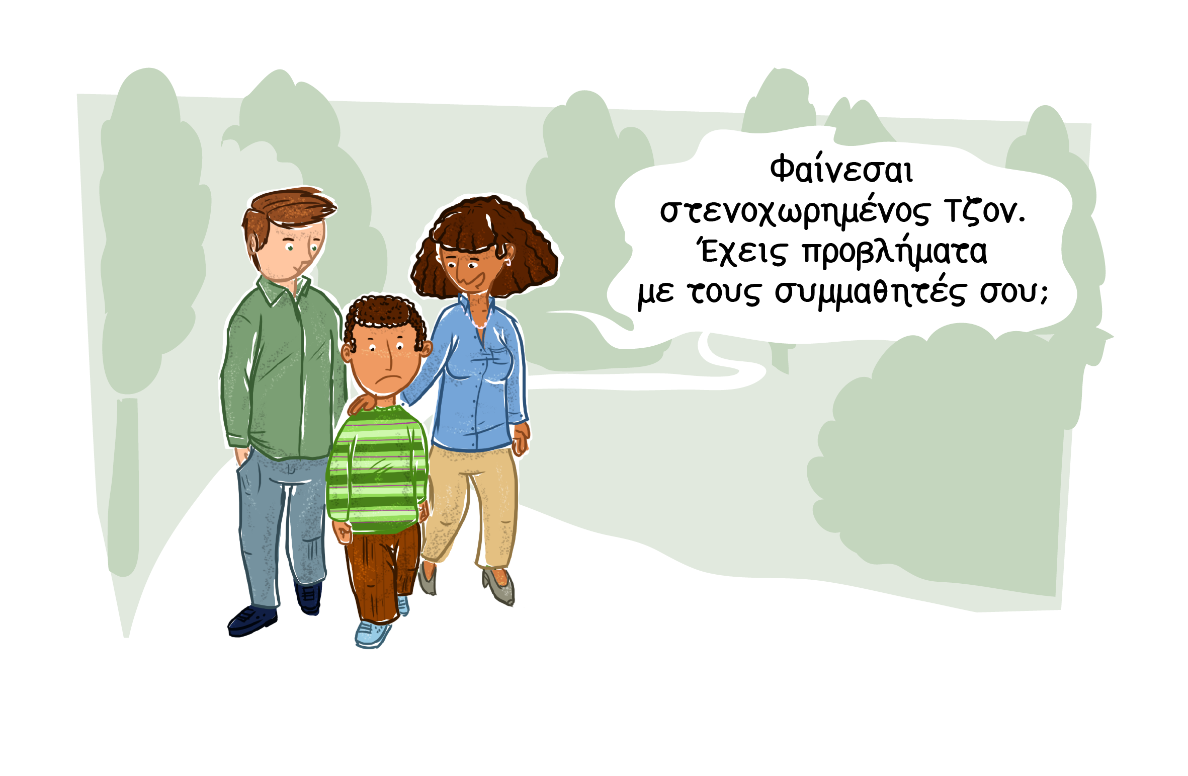 Living Democracy » Parents » ΠΑΙΔΙΑ (4 – 12 ετών) » Σχολικός Εκφοβισμός » Φαίνεσαι πολύ στενοχωρημένος Τζον. Έχεις προβλήματα με τους συμμαθητές σου;