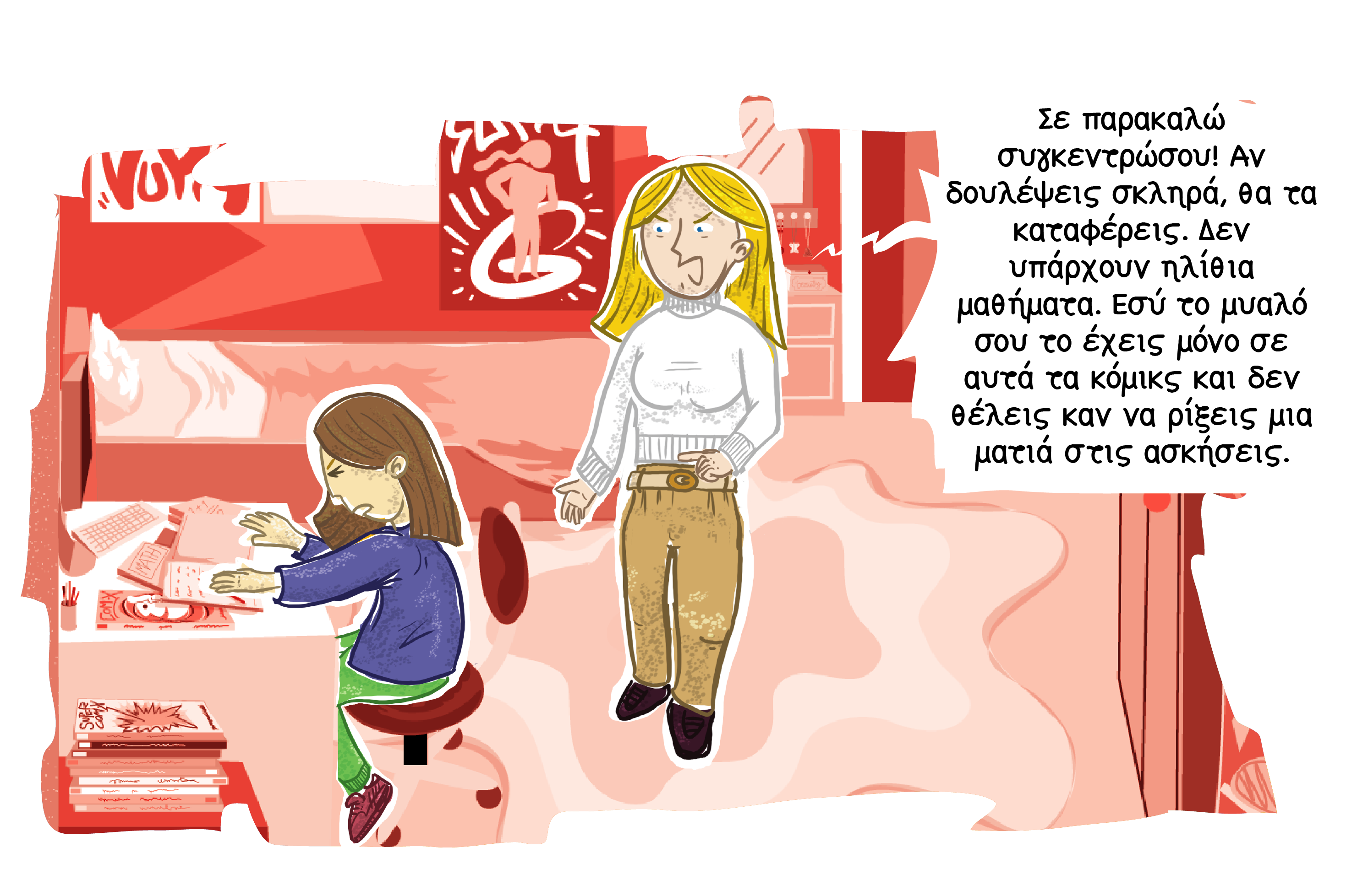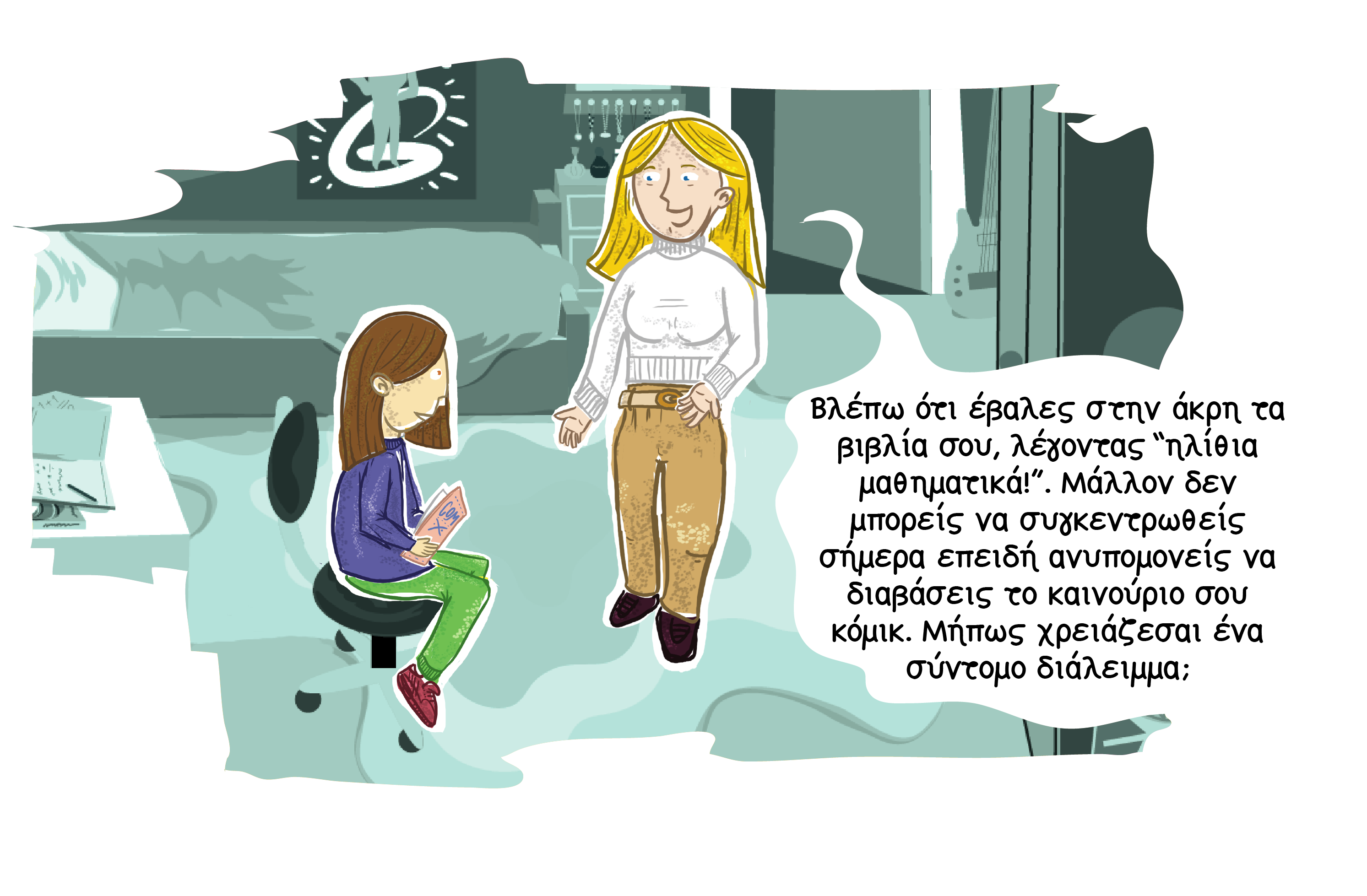 Μετά από μία κουραστική μέρα στο σχολείο, η Μαριάμ, η εννιάχρονη κόρη σας, πείθεται απρόθυμα να τελειώσει τη μελέτη της. Αφού προσπαθεί για λίγο και δυσκολεύεται να την κάνει, απογοητεύεται και θέλει να τα παρατήσει1.