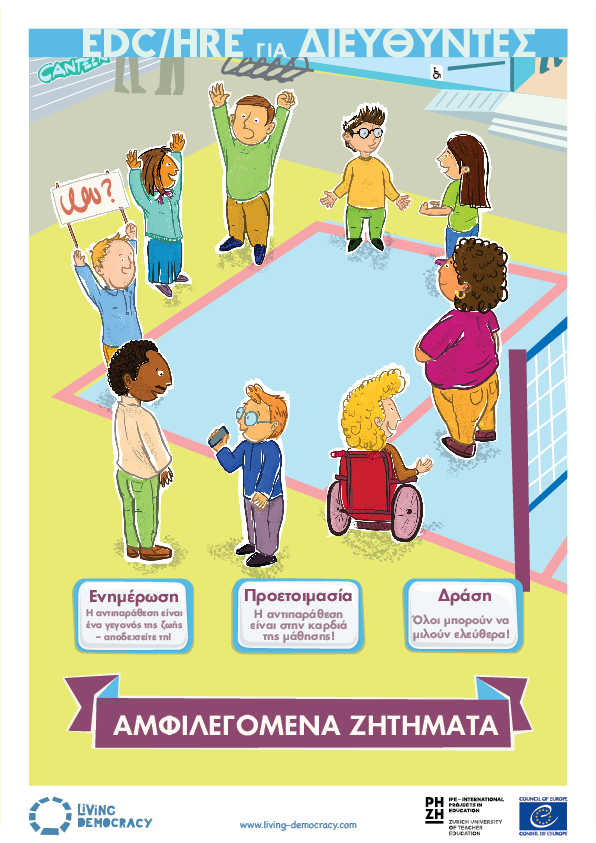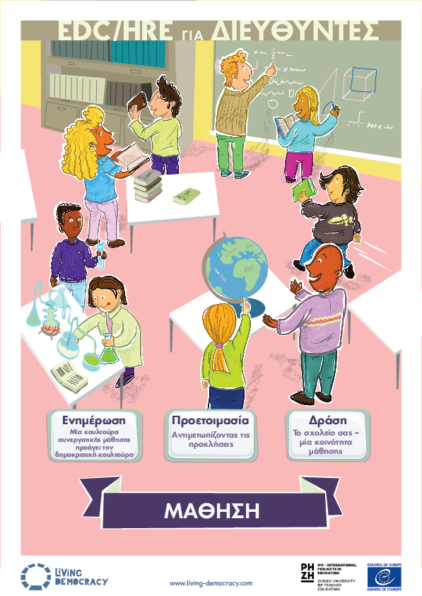 Μέσα από οκτώ διαφορετικές θεματικές μπορείτε να εφαρμόσετε τη δημοκρατική ζωή στο σχολείο σας.Κάνοντας κλικ σε ένα από τα θέματα θα βρείτε φυλλάδια: