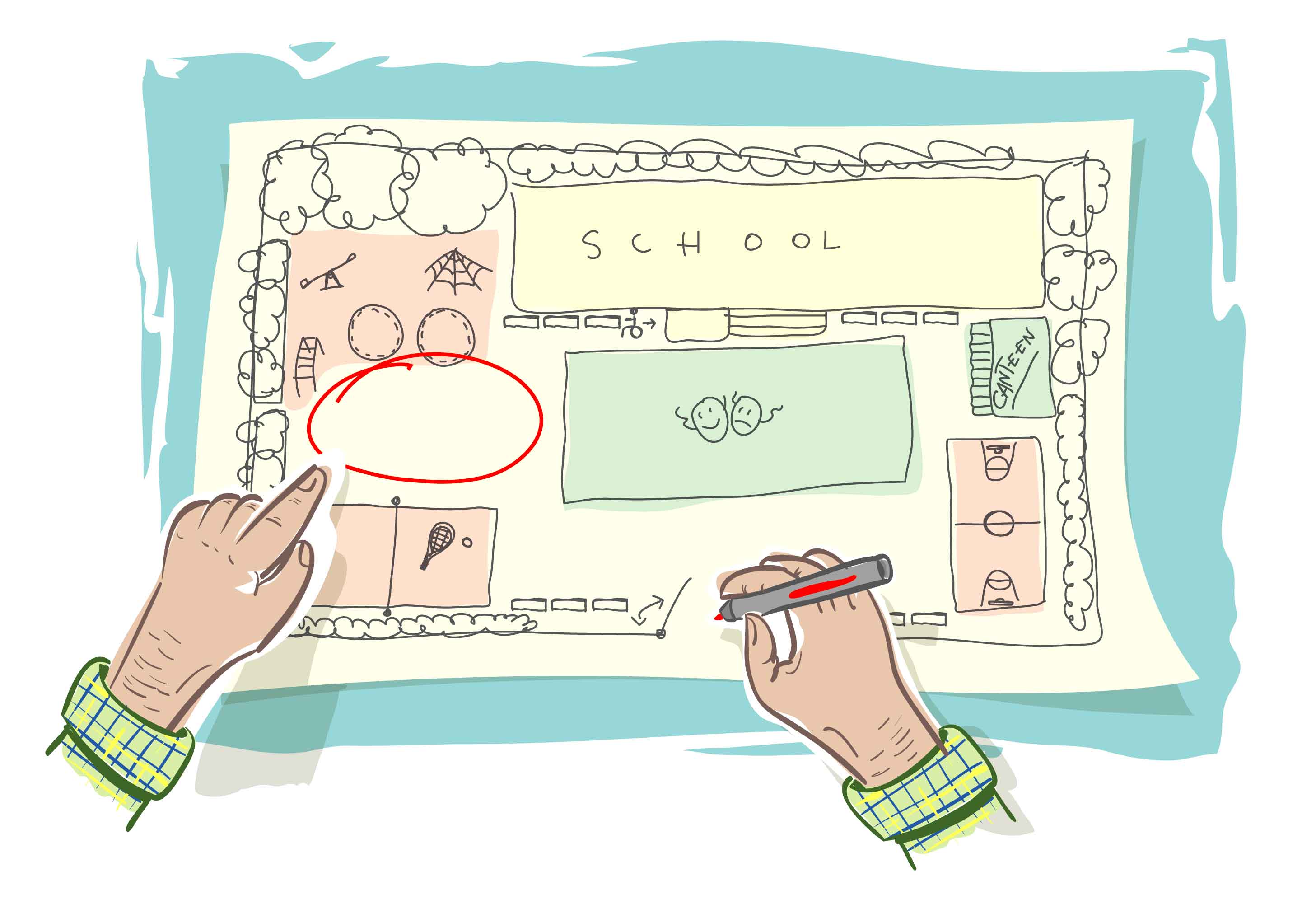 Living Democracy » Principals » Δραστήριο σχολείο » Προετοιμασία » Αντιλαμβανόμαστε το σχολείο μας ως ένα πιθανό μέρος «υγιεινού και κινητικά δραστήριου τρόπου ζωής».Αρχικά ετοιμάζετε ένα σχεδιάγραμμα του σχολείου με όλους τους εξωτερικούς χώρους συμπεριλαμβανομένων των φυτών, των σκαλοπατιών, των τοίχων, των στεγασμένων χώρων, κλπ. σύμφωνα με το πώς είναι τώρα το σχολείο σας. Στη συνέχεια, σκεφτείτε τα εξής: