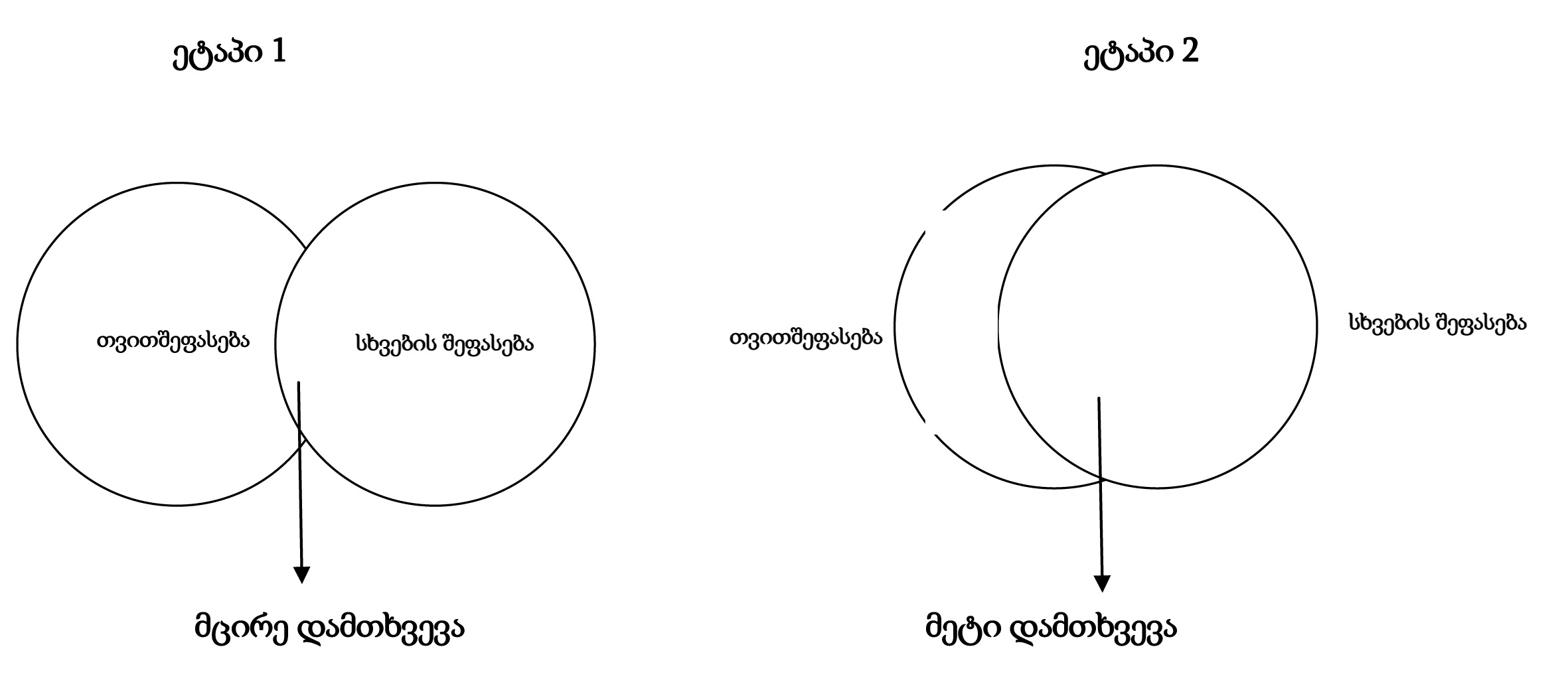 Living Democracy » Textbooks » განათლება დემოკრატიისათვის » ნაწილი 2 – დემოკრატიისა და ადამიანის უფლებების სწავლება » თავი 5 – მოსწავლეების, მასწავლებლებისა და სკოლების შეფასება » 2. მოსწავლეების, მასწავლებლებისა და სკოლების შეფასებასთან დაკავშირებული ამოცანა და ძირითადი კითხვები » 2 – სამუშაო ფურცელი 2: შეფასების პერსპექტივებითვითშეფასება და სხვების შეფასება პიროვნებას ეხმარება საკუთარი სტატუსის შეცნობასა და მოქმედებათა შემდგომი კურსის განსაზღვრაში. ორივე ტიპის შეფასება, ასევე, ახალი მიზნების დასახვის საფუძველსაც წარმოადგენს.