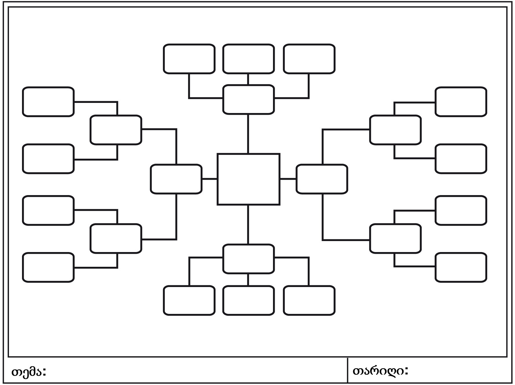 - წრიდან გამომავალი მსხვილი ხაზებიდან შეგიძლიათ გაავლოთ წვრილი ხაზები, რომლებიც წარმოადგენს ქვეკატეგორიებს ან კითხვებს, რომლებიც უკავშირდება მსხვილ ხაზებზე დაწერილ ქვეთემებს.