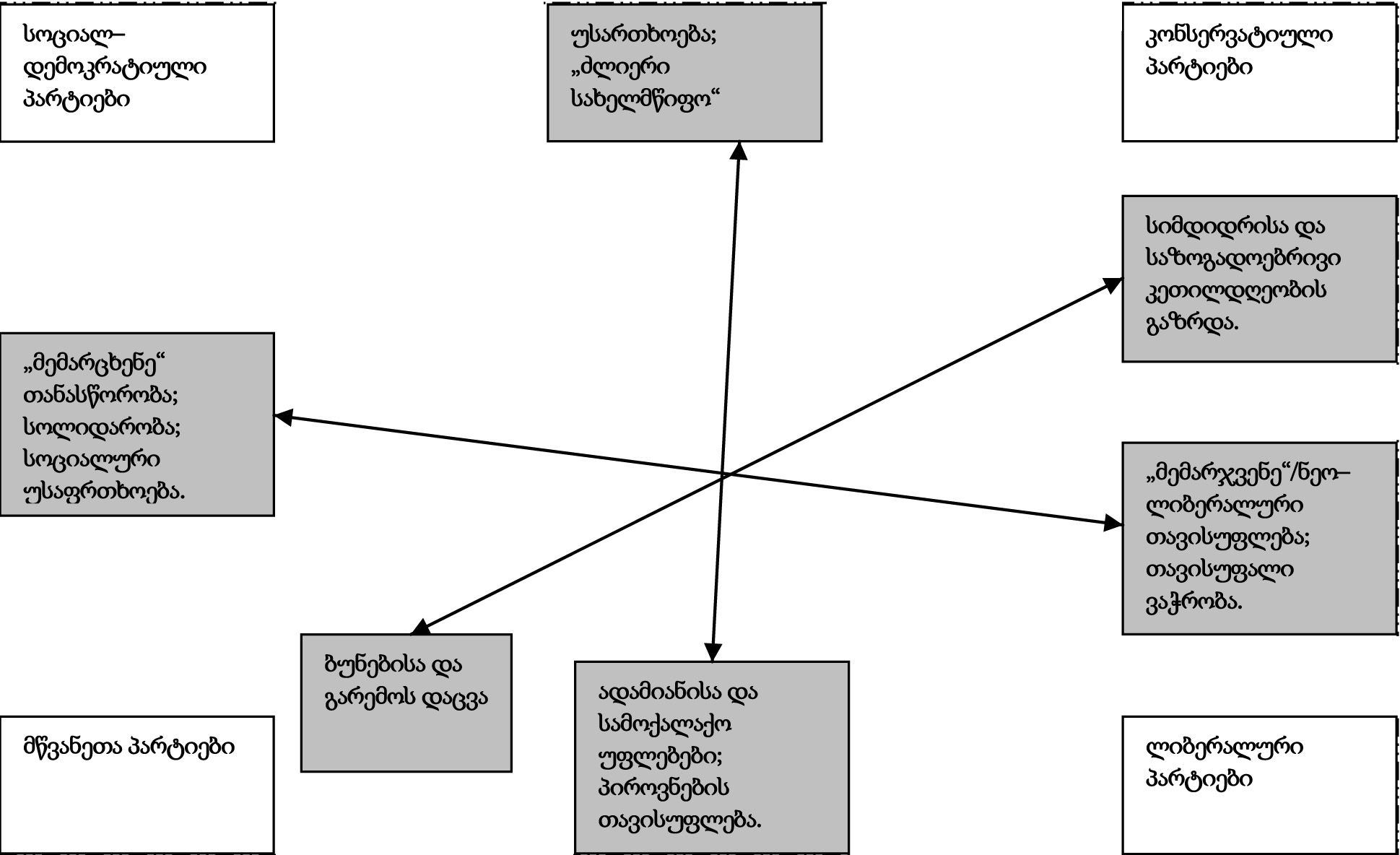 Living Democracy » Textbooks » მონაწილეობა დემოკრატიულ საზოგადოებაში » სახელმძღვანელო მოსწავლეებისთვის » მასალა მოსწავლეებისთვის 3.6: სოციალური წინააღმდეგობებისა და პოლიტიკური პარტიების სქემა