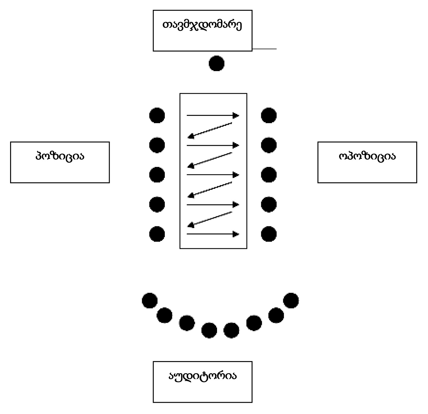 - აუდიტორია არ მონაწილეობს დებატებში.