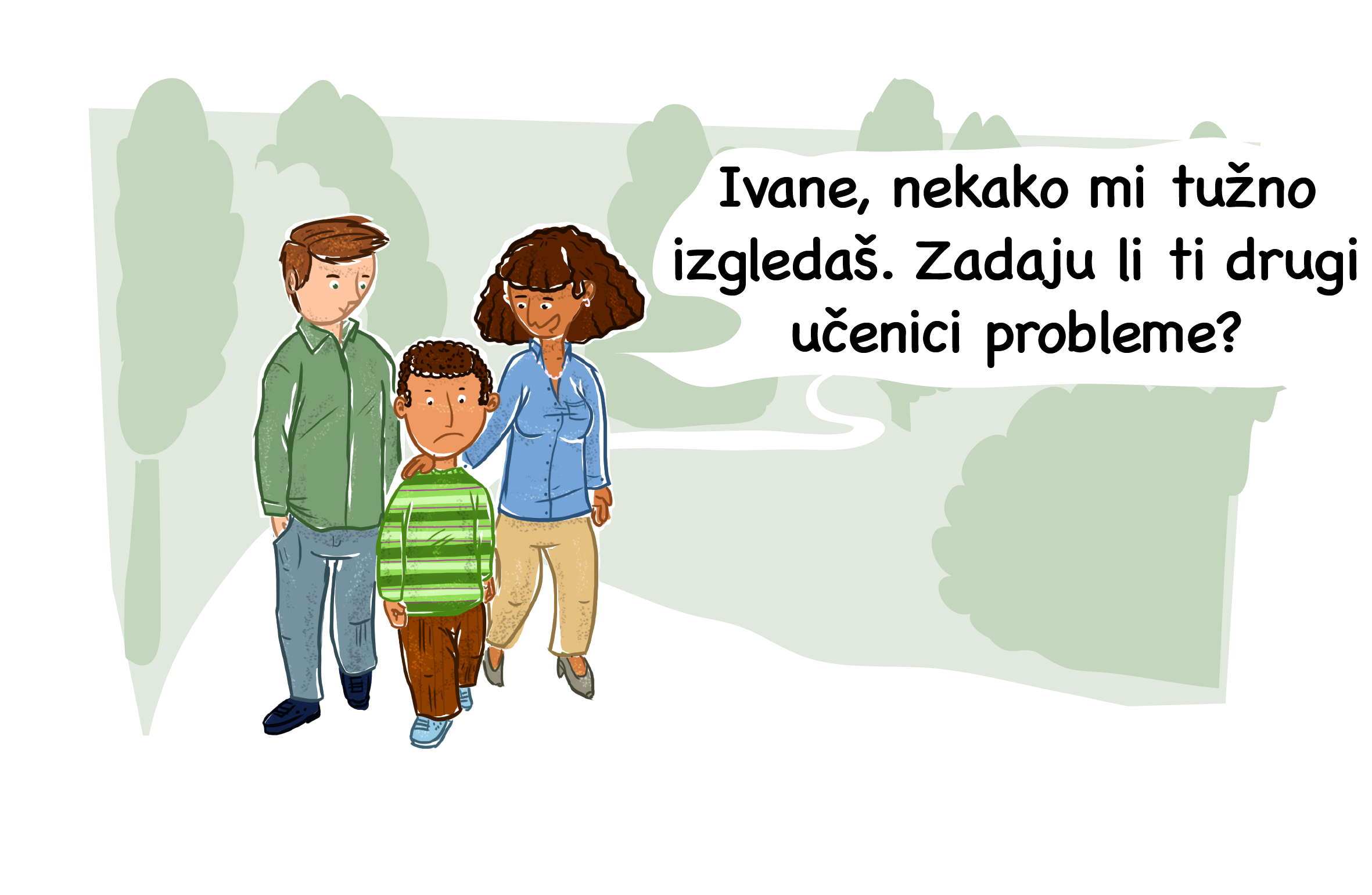 Living Democracy » Parents » Djeca (4 – 12 godine) » Zlostavljanje » Ivane, izgledaš mi jako tužno. Zadaju li ti drugi učenici probleme?