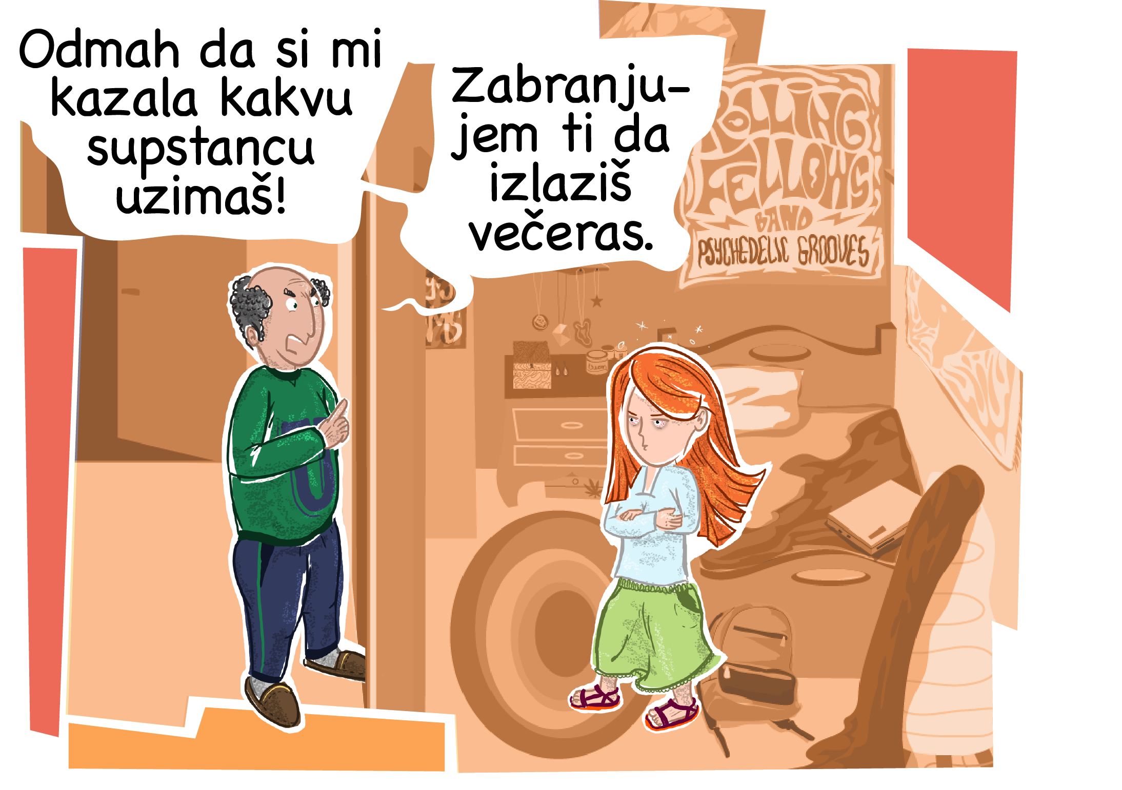 Nema mnogo koristi od forsiranja razgovora zasnovanog na emociji, jer bi se vjerovatno završio prekorima i svađom. Slično tome, nije preporučljivo da pokušavate da započnete razgovor sa kćerkom koja je pod uticajem alkohola ili narkotika. U takvom trenutku najbolje je da svoje brige podijelite sa njom, a detaljniju raspravu da odložite za kasnije. Pošaljite ja-poruku, koja može glasiti ovako: