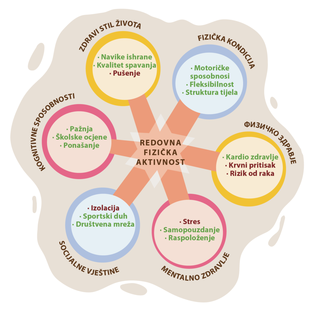 Kao što je gore ilustrovano, redovna fizička aktivnost direktno utiče na fizičku i mentalnu kondiciju osobe i njene socijalne i kognitivne vještine.