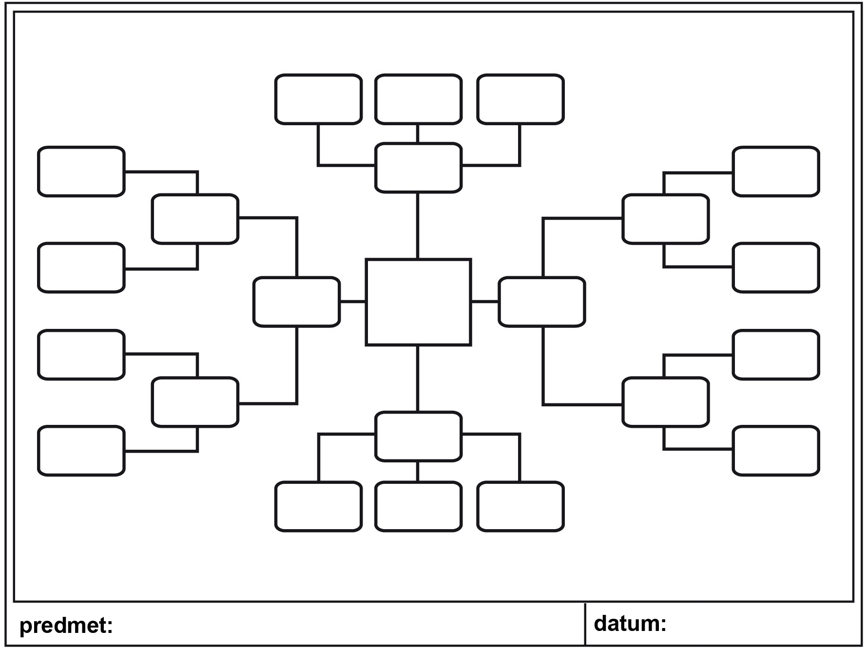 - Nacrtajte nekoliko debelih crta koje izlaze iz kruga. Na svakoj crti zapišite naziv podteme koja je povezana s glavnom temom u sredini.
