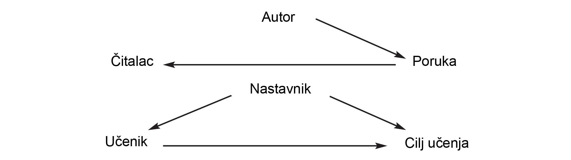 Zanimljivo je uporediti strukturu komunikacije između autora i čitaoca s onom između nastavnika i učenika u modelu didaktičkih pristupa. Tu postoje strukturalne analogije i značajne razlike.
