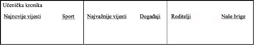 | Učenički zadaci | Učenici odlučuju o strukturi novina koje zajedno uređuju, utvrđuju teme relevantne za njihovu školu i pišu prilog za odgovarajuću rubriku zidnih novina. |