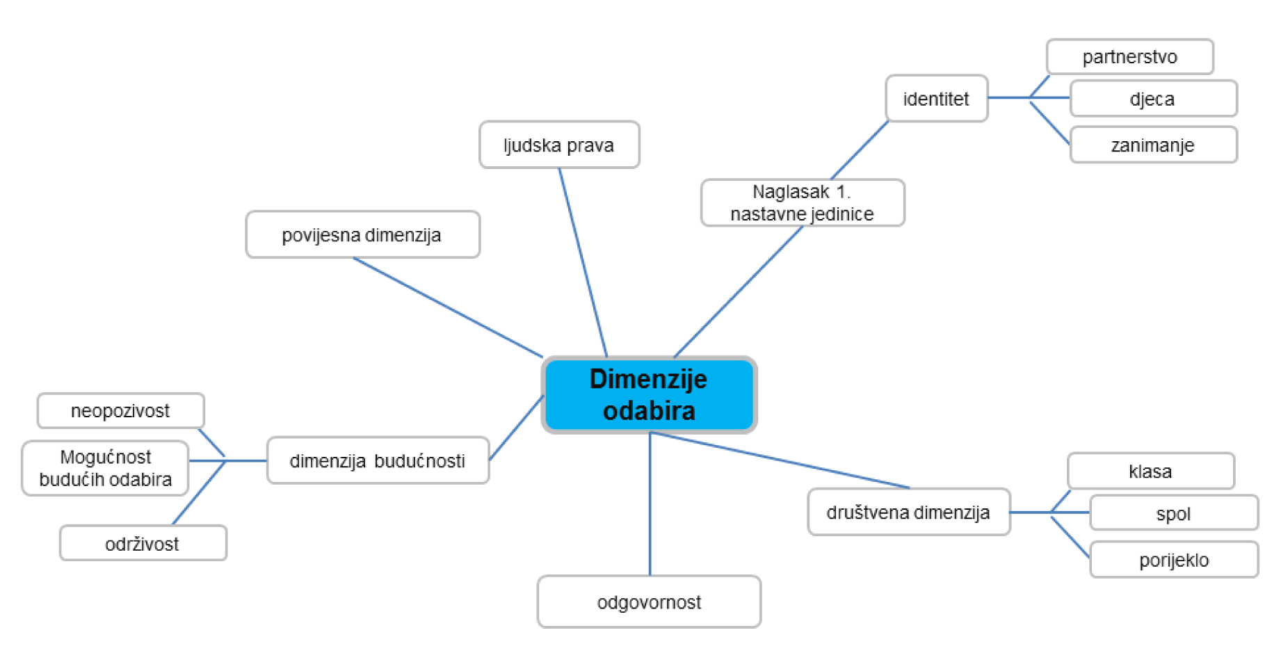 Nije samo pojam identiteta mnogo složeniji nego što se čini u ovoj jedinici; isto se odnosi i na pojam izbora. Gornji dijagram opisuje didaktički pristup u ovoj jedinici: učenici istražuju veze između dva složena pojma, ali ni jedan od njih u potpunosti.