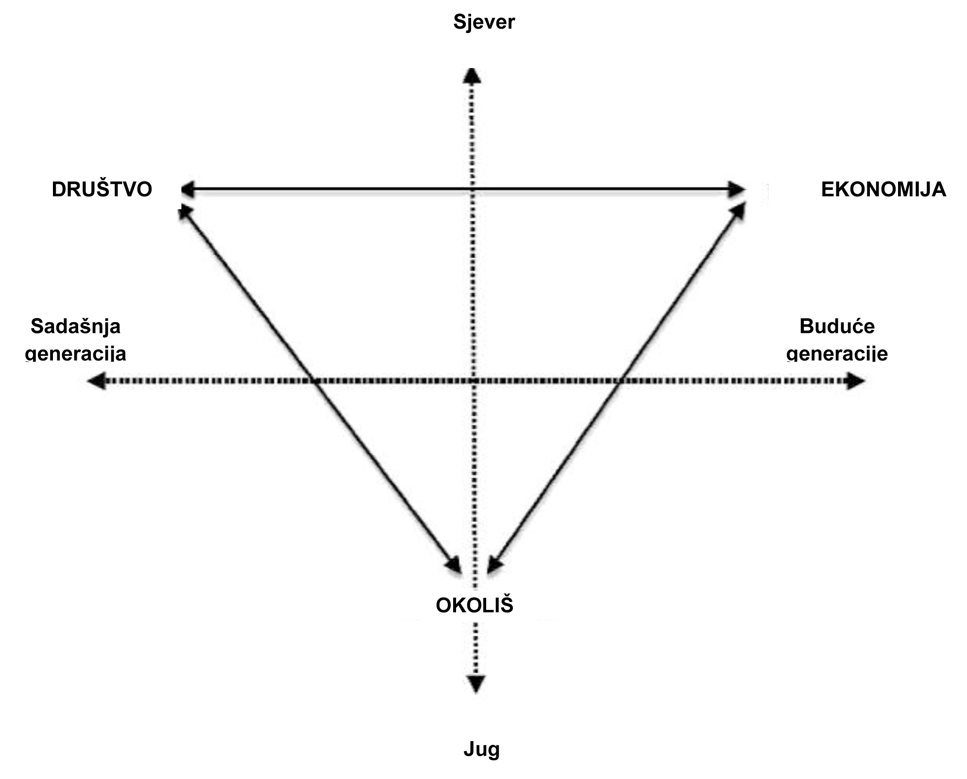 Ovaj model uključuje tri cilja održivosti i stavlja ih u istorijsku i globalnu dimenziju: