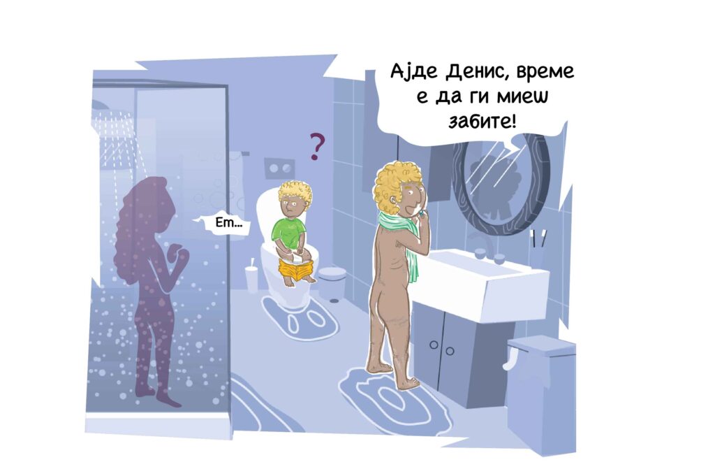 Денис (6 години) во последно време многу се заинтересира за своето тело. Тој сака да го погледне своето тело во огледалото во бања и да ве изненади едно утро со ова прашање.