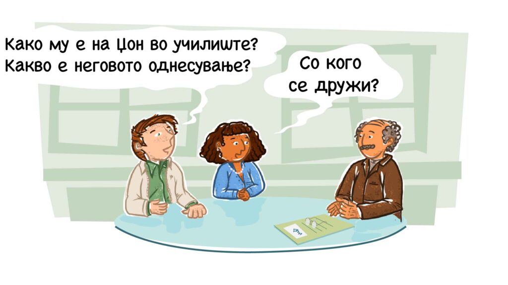 Ако наставникот забележал вакво однесување на соучениците кон вашето дете, тогаш следниот чекор треба да биде средба заедно со вашето дете. Совети за тоа како да се организира ваква средба можат да се најдат тука.