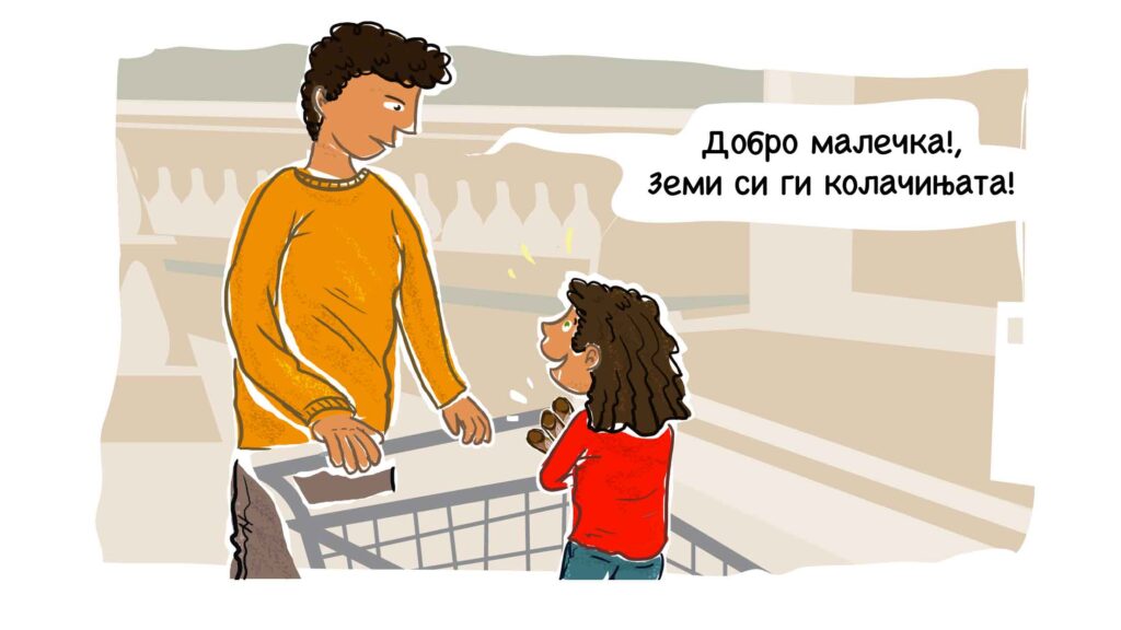 Living Democracy » Parents » МАЛИ ДЕЦА » Напад на бес » „Добро малечка!, Земи си ги колачињата!“