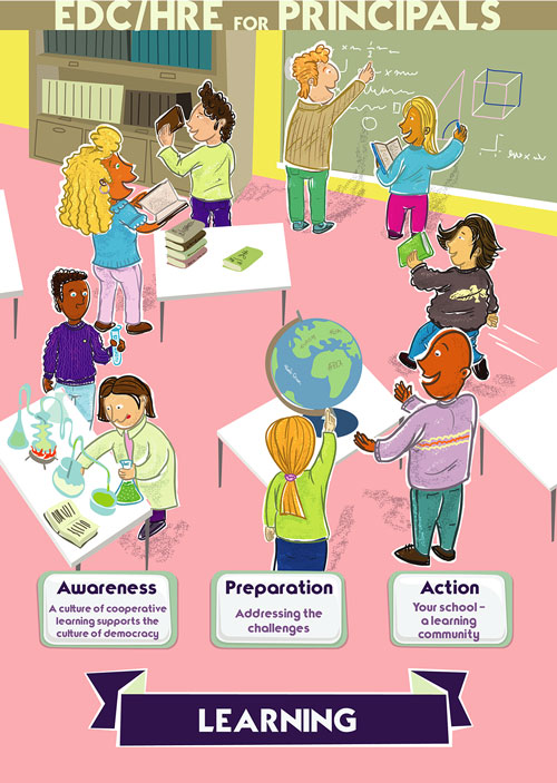 Through eight different topics you can implement democratic life in your school.By clicking on one of the topics you will find handouts to: