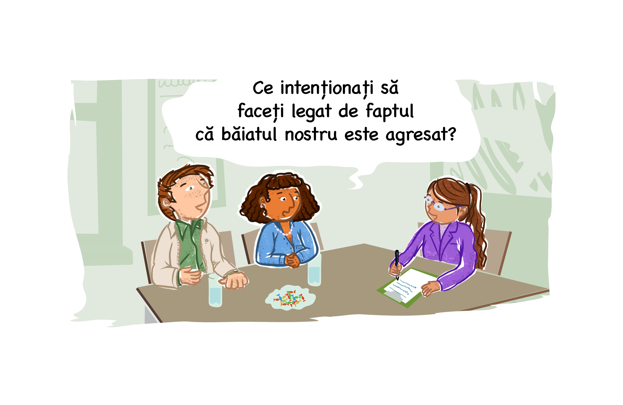 - Cazurile de hărțuire și intimidare la școală trebuie să fie rezolvate acolo unde se petrec. Vorbiți cu învățătorul copilului, cu un asistent social sau un consilier școlar despre temerile dvs. Întrebați învățătorul sau personalul școlii cum propun să se ocupe de acest caz de hărțuire și intimidare. Printre alte persoane pe care le-ați putea implica se numără directorul sau psihologul școlii.