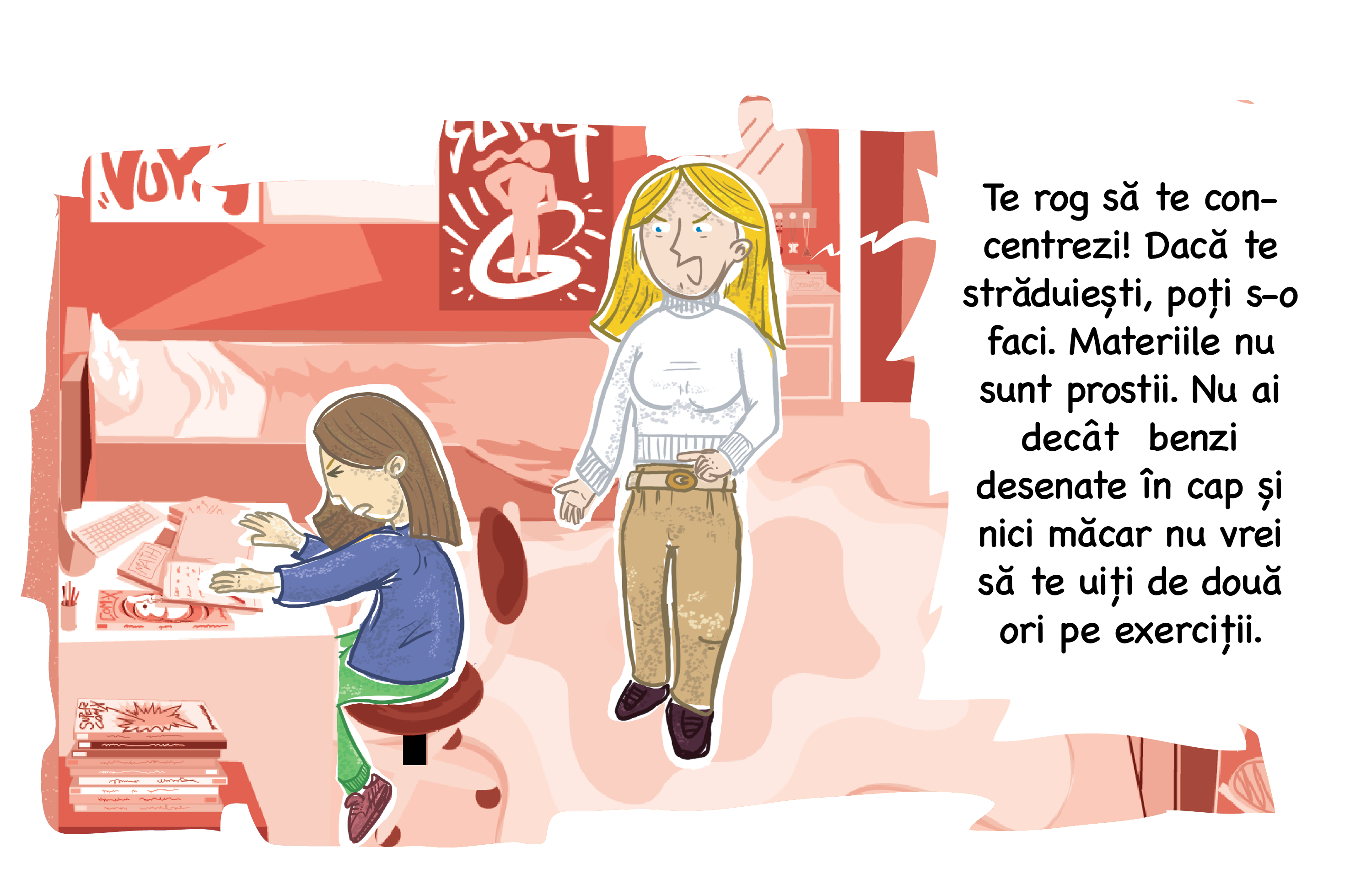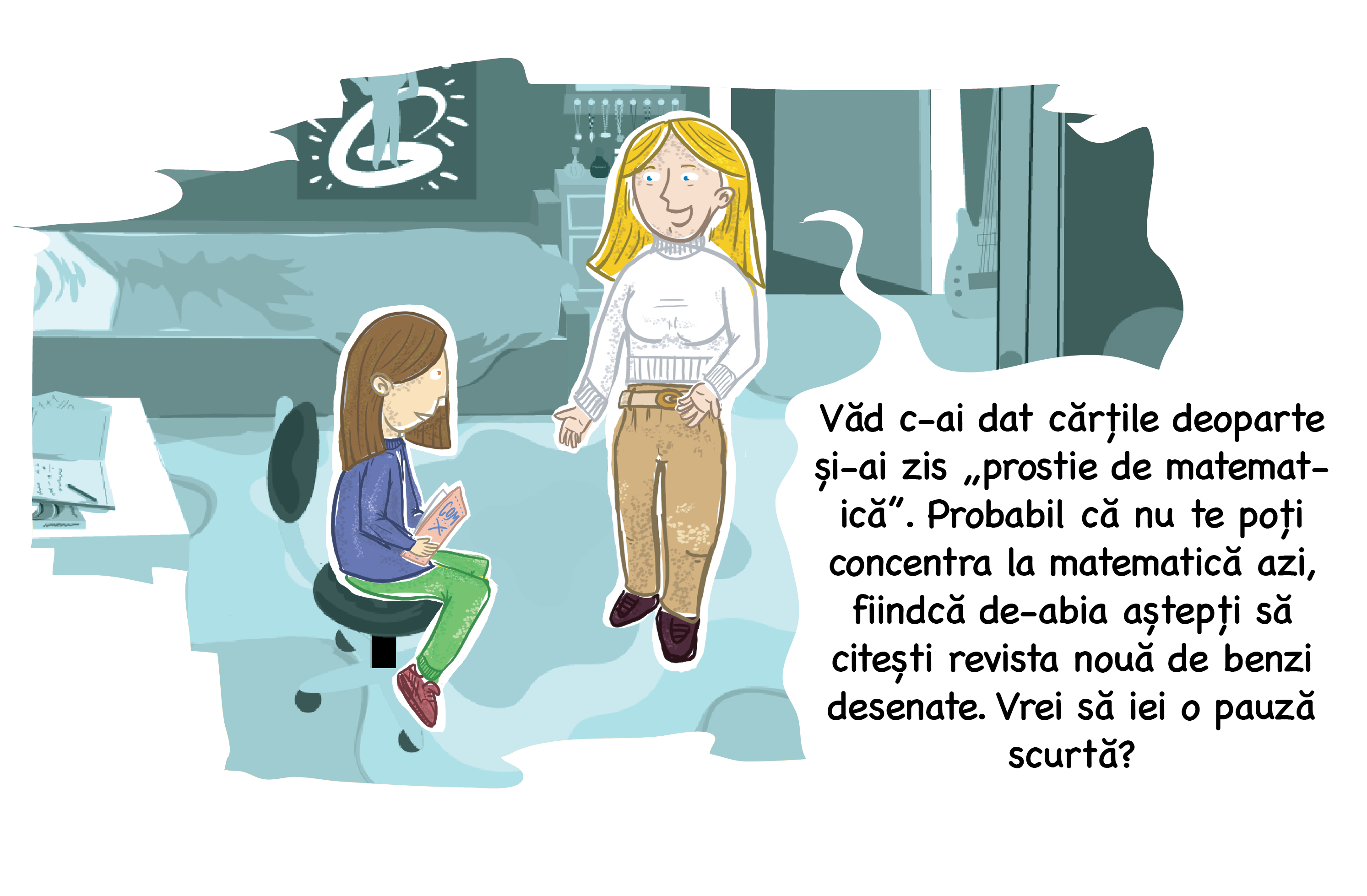 După o zi lungă la școală, Maria, fiica dvs. de nouă ani, cu greu este convinsă să-și termine temele pentru acasă. După ce s-a străduit puțin și nu a reușit să înțeleagă, ea este foarte frustrată și vrea să renunțe1.