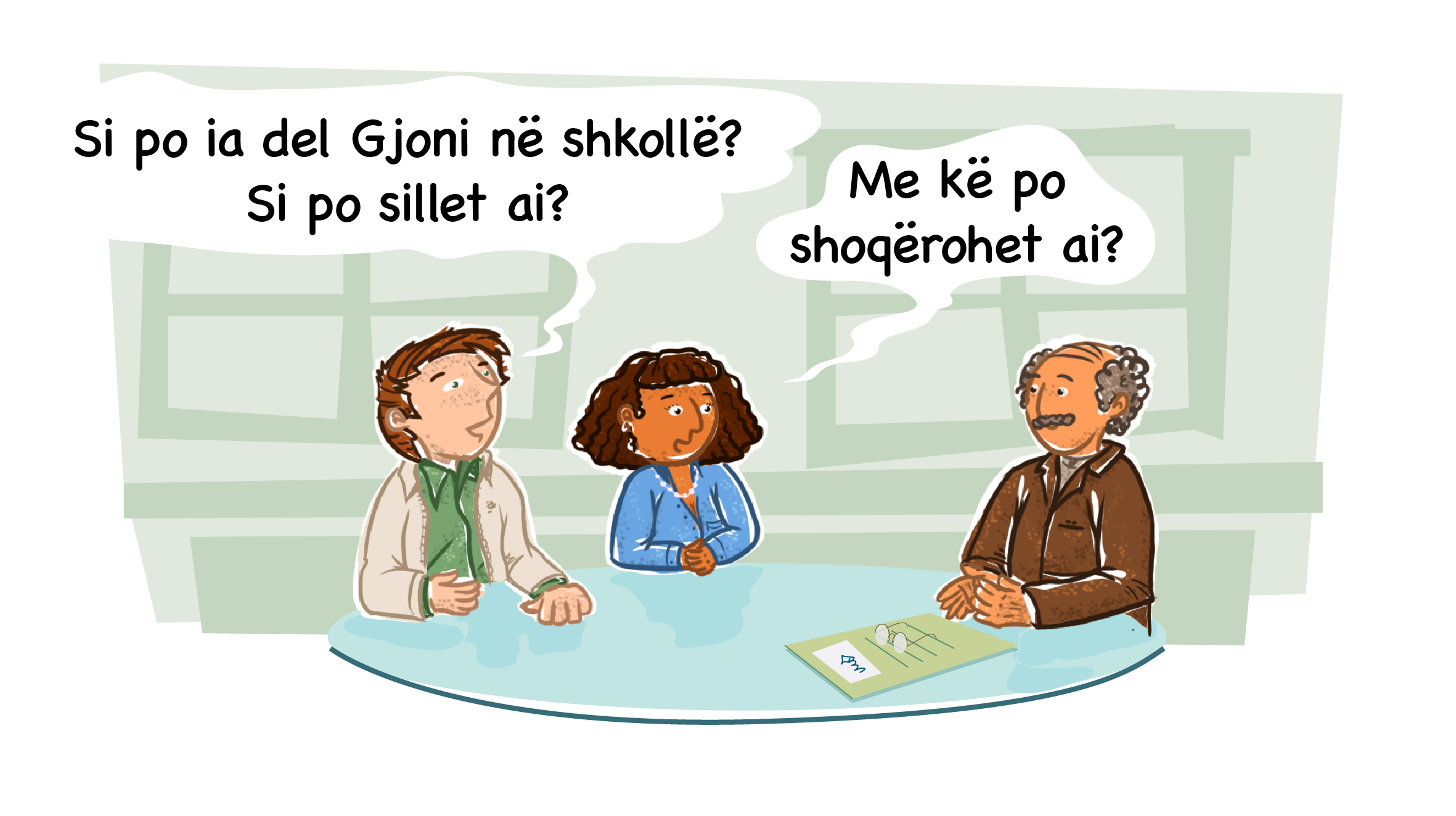 Nëse mësuesi ka vërejtur këtë lloj sjelljeje ndaj fëmijës suaj nga shokët e shoqet e klasës, atëherë hapi tjetër duhet të jetë një takim së bashku me fëmijën tuaj. Një këshillë mbi mënyrën e organizimit të një takimi të tillë mund të gjendet këtu.