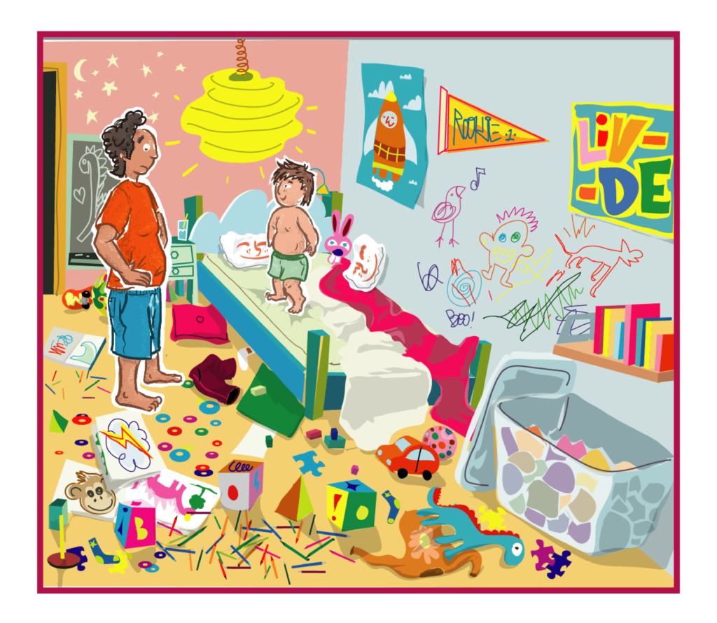 Ju jeni kënaqur duke luajtur me birin tuaj 1-vjeçar Markun. Së bashku keni ndërtuar shtëpi të mëdha dhe kështjella me blloqe lodrash. Pastaj keni shtyrë makinat lodra rreth këtyre ndërtesave, duke shkaktuar shembjen e kështjellave. Marku po ashtu ka marrë libra të ndryshëm nga rafti. Tani, blloqet e ndërtimit, librat, makinat lodra dhe shumë gjëra të tjera janë përhapur në gjithë dyshemenë dhe mobiljet e dhomës. Kur vjen koha për të pastruar, ju doni që fëmija juaj ta rregullojë dhomën së bashku me ju. Por Marku nuk tregon interes; ai është i lodhur, i zemëruar, i uritur dhe fillon të hedhë lodra përreth.