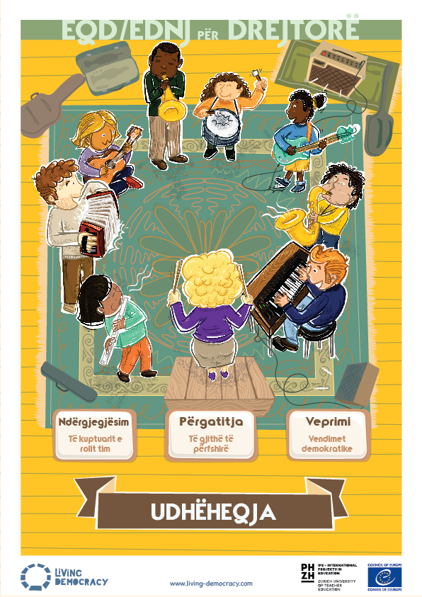 Përmes tetë temave të ndryshme ju mund ta zbatoni jetën demokratike.Duke klikuar në njërën nga temat ju mund te gjeni materiale për të: