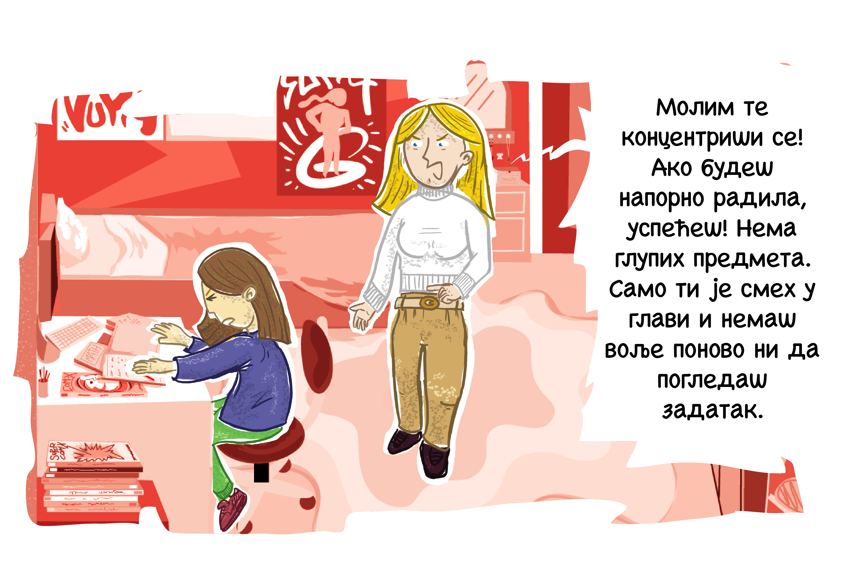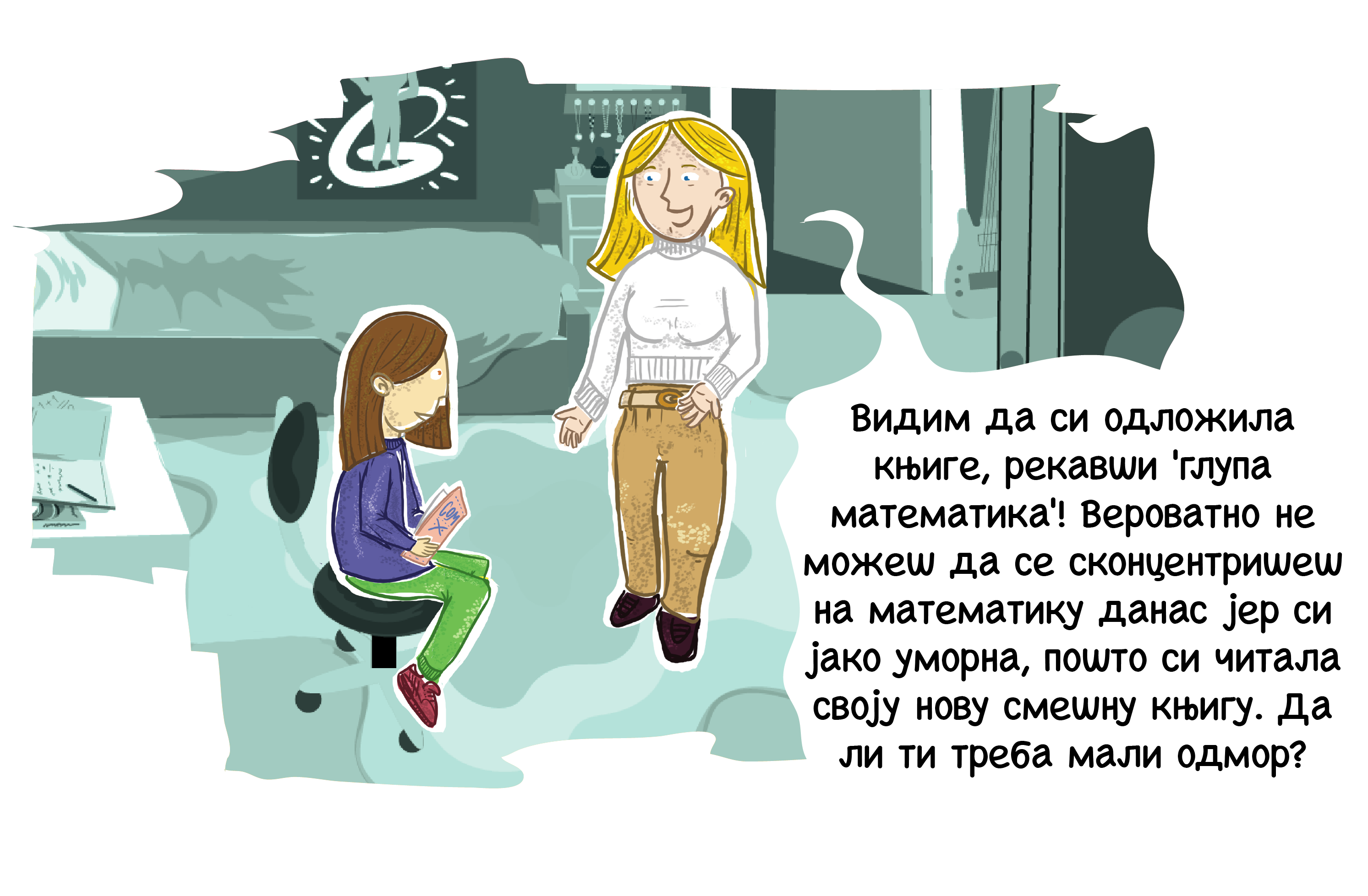 Након дугог дана школи, Марта, ваша деветогодишња ћерка, нерадо тера себе да заврши свој домаћи задатак. Покушала је кратко али пошто није успела, потпуно је фрустрирана и жели да прекине. 1.