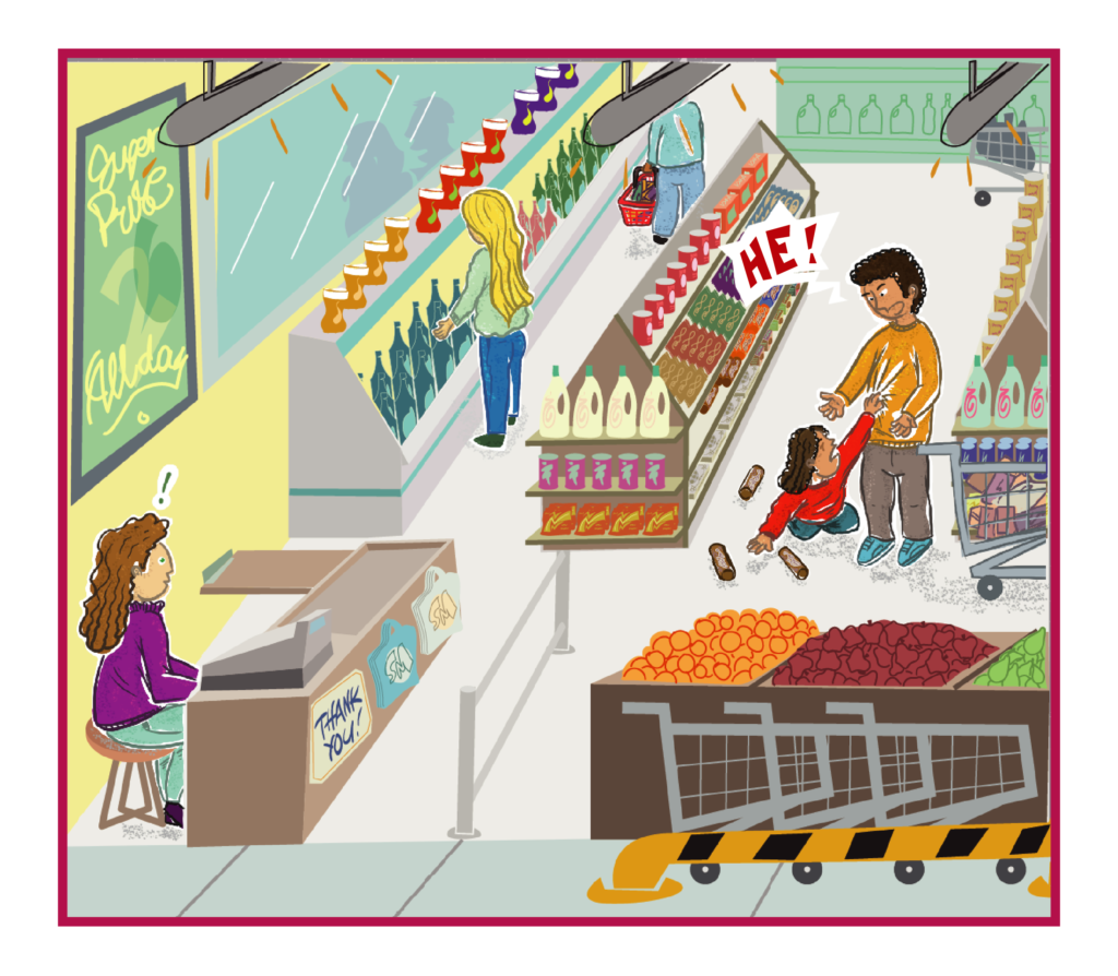 Налазите се у продавници са својим двогодишњом ћерком Теодором која ту налази обиље интересантних ствари, попут чоколаде, пластичних посуда и новина. Жели да их ставите у корпу и купите. Али вама они нису потребни и говорите јој да их остави. Теодора тражи да јој купите три кутије омиљеног кекса. Говорите јој:“Не, Теодора, имамо код куће тај кекс. Молим те врати га на полицу!“ Али Теодора вас не слуша и инсистира на томе да јој купите баш тај кекс. Почиње да пада у тантрум и не делује да ће се у скорије време смирити.