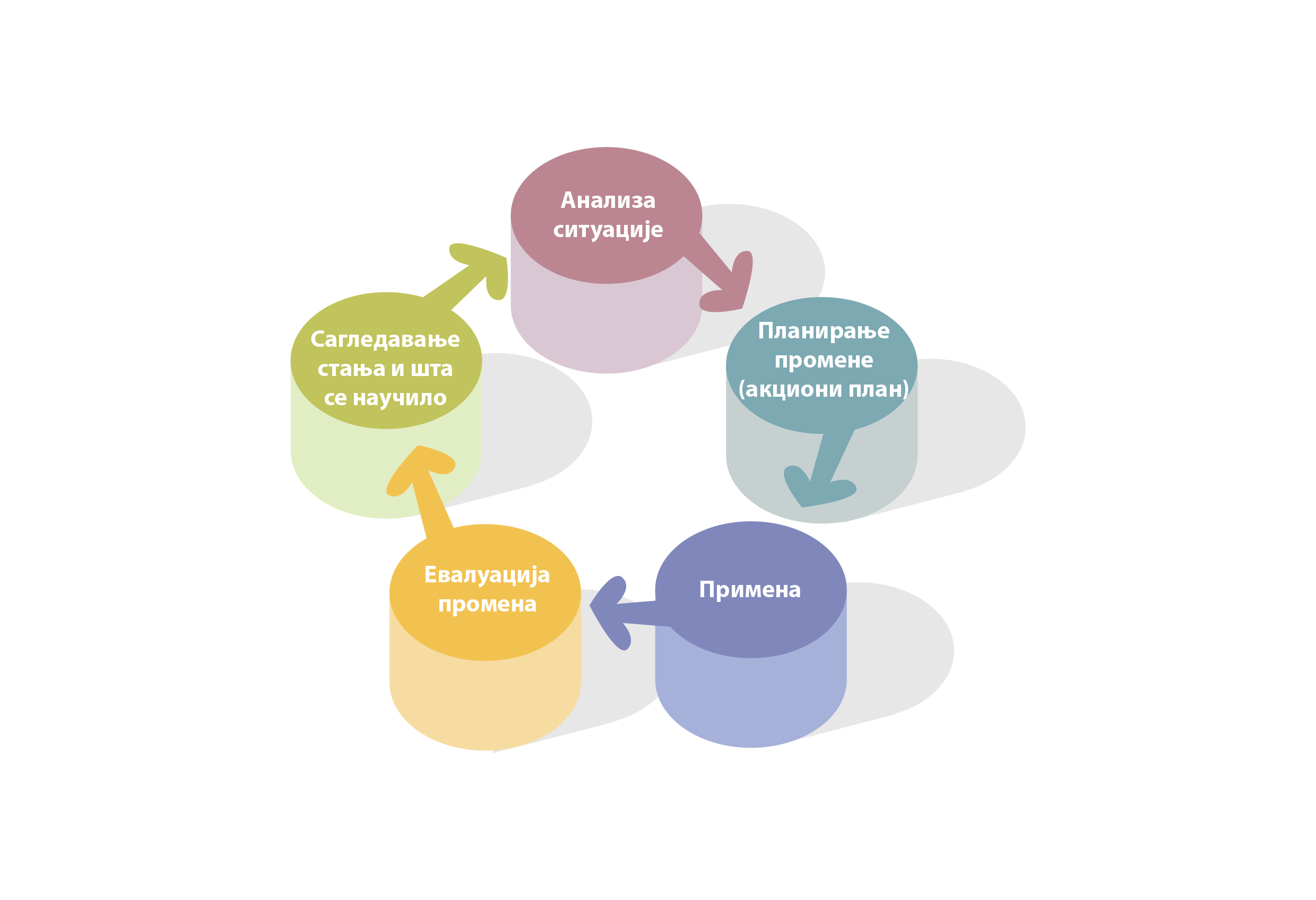 - Са свим заинтересованим странама (актерима) поделите шта сте научили, али и са другим школама и у складу са тим планирајте нова деловања.