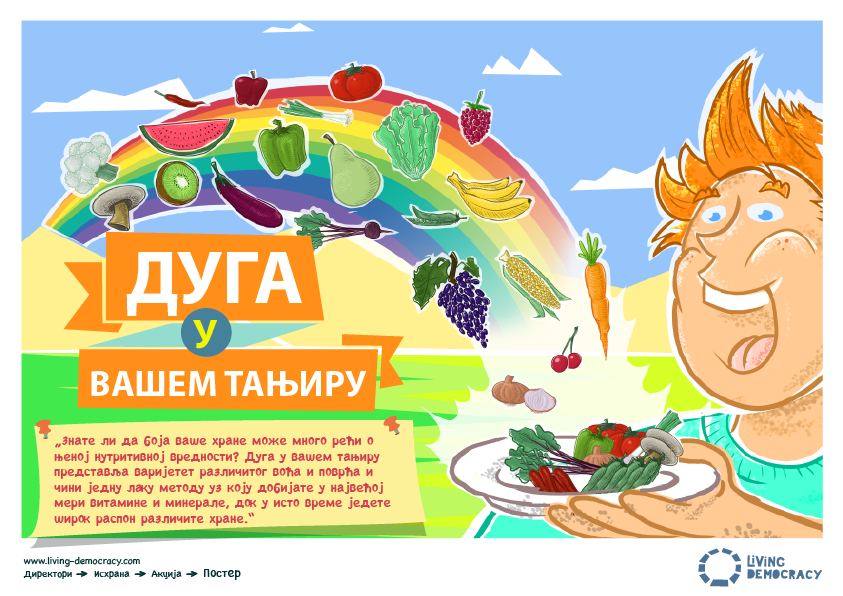Living Democracy » Principals » ИСХРАНА » Акција » плакат 1 – ДУГА У ВАШЕМ ТАЊИРУ